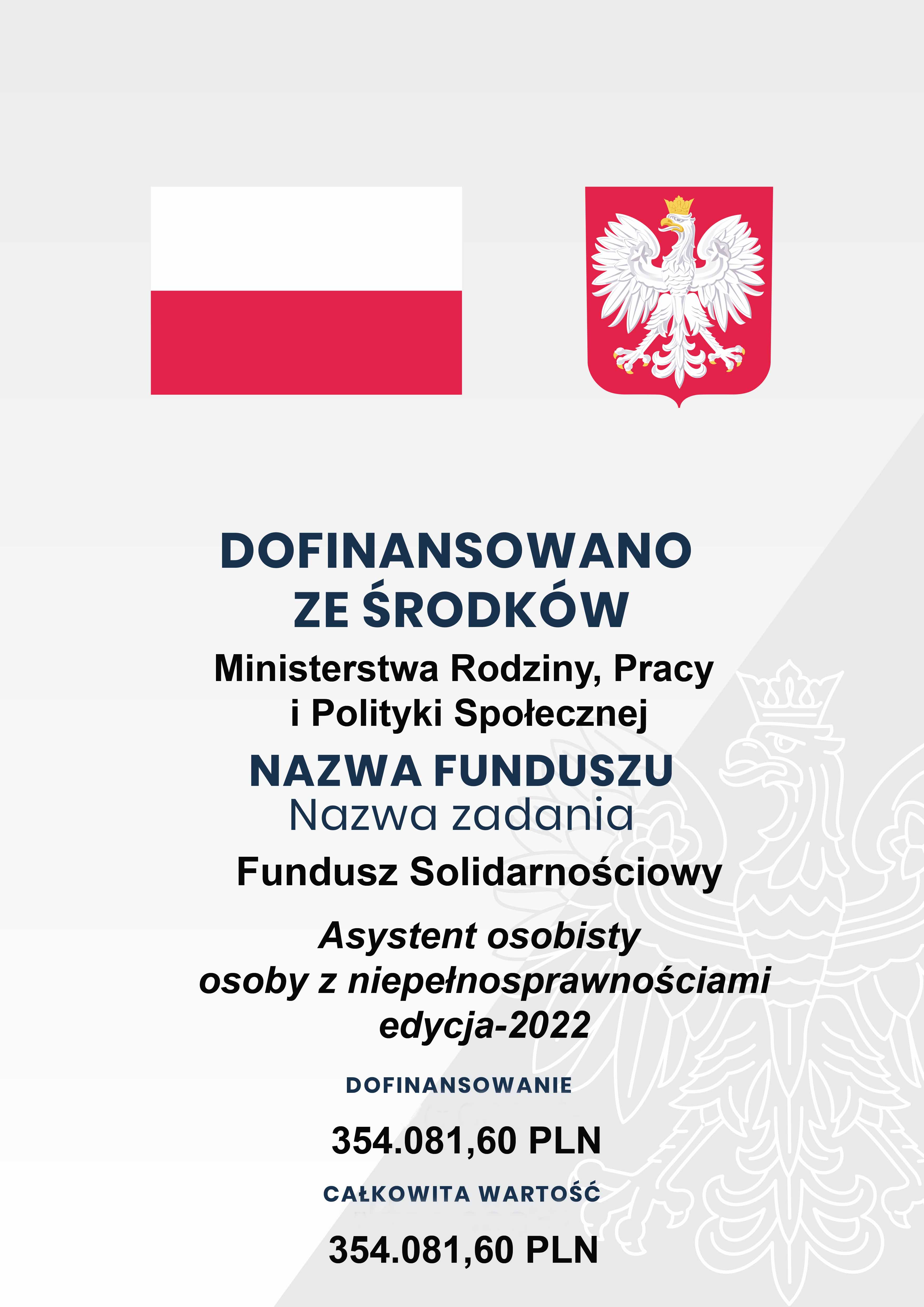 Fundacja Fuga Mundi informuje, że oferta dotycząca realizacji usług asystenckich złożona do Ministra Rodziny i Polityki Społecznej w ramach programu resortowego "Asystent osobisty osoby z niepełnosprawnościami" – edycja 2022 o sfinansowanie ze środków Solidarnościowego Funduszu Wsparcia Osób Niepełnosprawnych, została umieszczona na liście ofert zaakceptowanych do dofinansowania w 2022 r. ale z kwotą o ponad 30% mniejszą niż wnioskowano w ofercie.