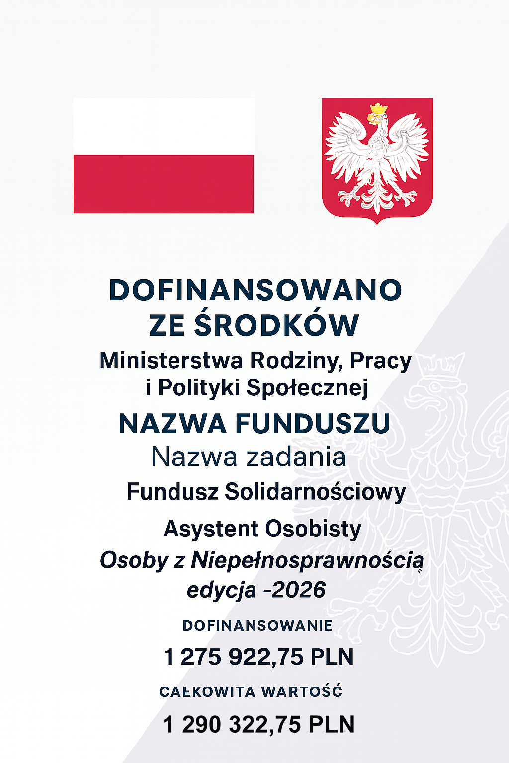 Informujemy, że rozpoczynamy przyjmowanie zgłoszeń do Programu Ministra Rodziny, Pracy i Polityki Społecznej „Asystent osobisty osoby z niepełnosprawnością” dla Organizacji Pozarządowych - edycja 2026, finansowanego ze środków Funduszu Solidarnościowego pomimo, że obecnie trwają jeszcze procedury związane z zawarciem umowy.